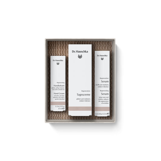 Na Dr. Hauschka, desenvolvemos uma linha de produtos de cuidado regeneradores formulados especificamente para peles maduras. Estes produtos não só ajudam a manter a pele activa, como também promovem a sua capacidade natural de regeneração, regulam a hidratação e proporcionam uma sensação de firmeza e suavidade.